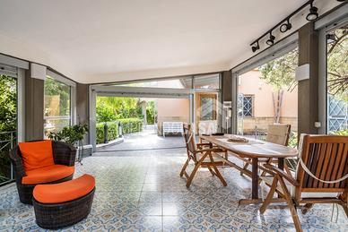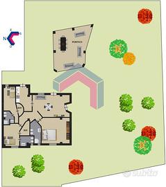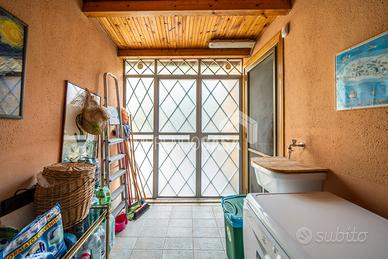 La casa è composta salone - soggiorno, cucina, camera da letto con cabina armadio e servizio, camera da letto, lavanderia, 2 servizi, portico pari a 40 mq, giardino d'inverno.