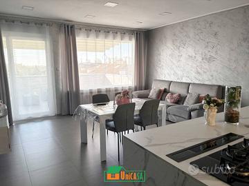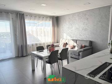 Rif: 3588 (193370324) - proponiamo soleggiato appartamento al 6 e ultimo piano. Internamente composto da ampia zona giorno open space con isola centrale, 2 camere matrimoniali, bagno con ampia doccia, ripostiglio e vano lavanderia per un totale di 110 mq. Inoltre completano la proprietà un balconcino e una grande terrazza di c.a. 16 mq con ottima esposizione e vista panoramica, con pergola motorizzata. Riscaldamento autonomo e climatizzazione in ogni stanza. Arredamento completo di pregio compreso nel prezzo. L'immobile è stato ristrutturato completamente nel 2020.Classe energetica E. Per visionare l'immobile o avere maggiori informazioni non esitate a contattarci al numero dal lunedì al venerdì 9.00-12.30 e 15.30-19.00 oppure inviandoci un e -mail ad agenzia@unicasamonfalcone.it - Classe: E - IPE: 175.00 kWh/mq anno