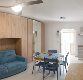 Ischitella - Gargano. In vendita o affitto stagionale monocamera arredato con cucinino, dotato di caminetto e un bagno. Piano rialzato a pochi passi dalla piazza del paese. Ideale come alloggio vacanze per coppia. Situato ad Ischitella, paesino in collina circondato da campagna nel Parco nazionale del Gargano, a soli 5 km dal mare di Foce Varano o Lido del Sole (Rodi Garganico), dal lago di Varano e dalla Foresta Umbra. A circa 20 km da Peschici e 40 km da Vieste e dalle Isole Tremiti.