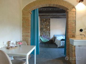 Nel Borgo medievale di Montalcinello (frazione di Chiusdino), Studio di 45mq recentemente ristrutturato Appartamento con Ingresso indipendente composto di cucina e camera da letto al piano terra e da un bagno ricavato in una antica cantina con volta a botte in mattoni. Condizionatore caldo/freddo, cucina a induzione Si affitta gia' arredata. Disponibile sia per affitti di lungo periodo che transitori, minimo 6 mesi.
