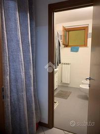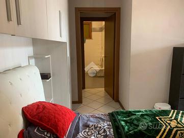 Cucina e soggiorno open space, camera matrimoniale e bagno finestrato con doccia.