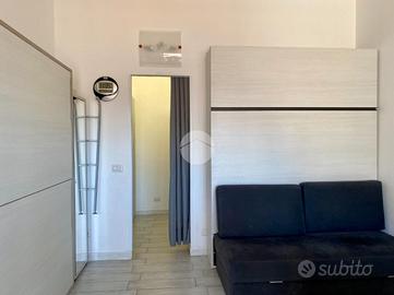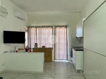 Marina di Tor San Lorenzo - Litoranea Ostia Anzio km 23.750 - all'interno del rinomato complesso Marina Grande, proponiamo in vendita un elegante monolocale completamente ristrutturato, situato al piano terra di una palazzina recentemente riqualificata e già predisposta per l'installazione di pannelli fotovoltaici. L'immobile si presenta in condizioni impeccabili, con finiture moderne e soluzioni d'arredo di ultima generazione studiate per ottimizzare al massimo gli spazi: sono stati installati innovativi mobili salvaspazio che, all'occorrenza, si trasformano in comodi posti letto, includendo un letto matrimoniale e due letti singoli, perfettamente integrati nell'ambiente. La distribuzione interna è funzionale e ben organizzata, mentre il bagno, dotato di antibagno, garantisce praticità e comfort. Punto di forza della proprietà è l'ampio terrazzo abitabile, esposto a ovest, ideale per godersi momenti di relax all'aria aperta. Lo spazio esterno è arricchito dalla presenza di un lavandino e di prese elettriche, offrendo la possibilità di realizzare una vera e propria cucina esterna. La posizione è particolarmente strategica: a soli 300 metri dallo stabilimento balneare Roma e con tutti i principali servizi di prima necessità comodamente raggiungibili a piedi, tra cui supermercato, ristorante, bar, tabacchi, cartoleria, parrucchiere e fermata Cotral. Soluzione ideale sia come casa vacanze che come investimento, grazie alla recente ristrutturazione, alla versatilità degli spazi e alla vicinanza al mare. INFORMAZIONI CATASTALI: -CATEGORIA: A/2; VANI: 2; RENDITA: €247,90 INFORMAZIONI IMMOBILI: - ANNO COSTRUZIONE: 1974 - STATO IMMOBILE: completamente ristrutturato -RISCALDAMENTO: condizionatore c/f -VARIE: predisposizione pannelli fotovoltaici. Le presenti informazioni non costituiscono elemento contrattuale