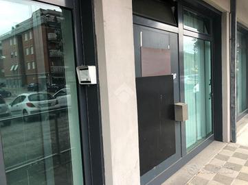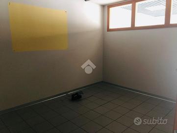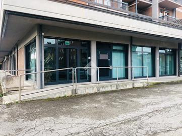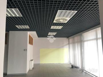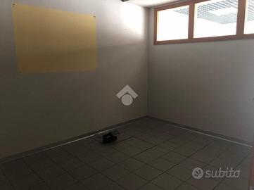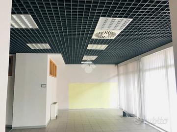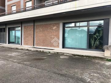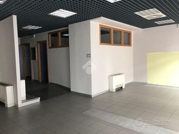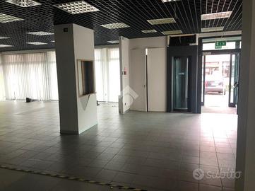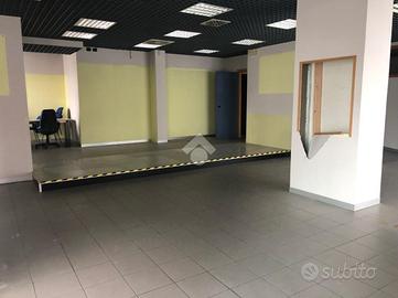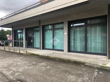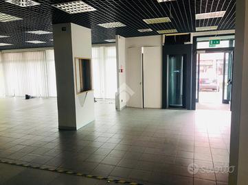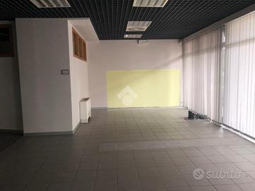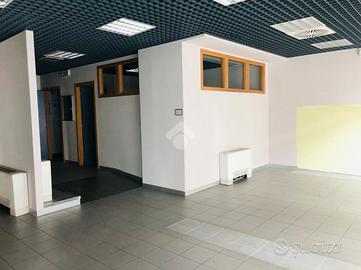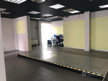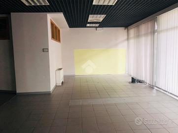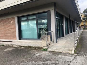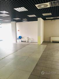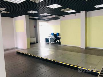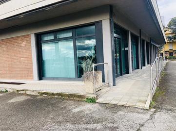 Il locale viene affittato senza impianti elettrici,pavimenti e finiture interne.internamente è cosi suddiviso: ampio ingresso con due vetrate che affacciano nella via principale, un ufficio, bagno con due servizi uno dei quali a norma disabili,spogliatoglo e magazzino. Ampio parcheggio per la clientela antistante libero da subito