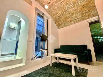 Bergamo centro - via Pignolo Piccolo appartamento recentemente ristrutturato, situato al piano terra e affacciato sul tranquillo cortile interno di un prestigioso edificio storico. L'unità, organizzata in un funzionale ambiente open space, dispone di letto matrimoniale su soppalco accessibile tramite scala in legno, soluzione che ottimizza gli spazi rendendola ideale per un pubblico giovane. Al di sotto del soppalco è stata realizzata un'ampia cabina armadio, mentre il cucinotto, collocato in una nicchia, risulta discreto e ben integrato nella zona giorno. Il bagno finestrato è dotato di una spaziosa doccia. Completano la proprietà i soffitti alti con volte in muratura, che conferiscono all'ambiente un carattere unico, caldo e accogliente. Ideale sia per investimento che per utilizzo come B&B