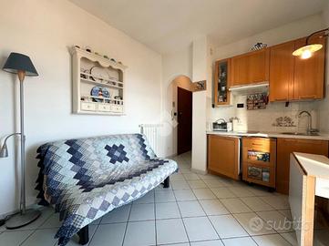 All'interno, un luminoso soggiorno con angolo cottura vi proietta in un ambiente caldo e accogliente con accesso sul terrazzo, un angolo privato con una vista suggestiva sul mare, dove potrai rilassarti al sole, organizzare cene con amici o semplicemente goderti la pace e la bellezza di un tramonto ligure. Il bagno finestrato è dotato di box doccia. Completa la proprietà una cantina al piano terra.