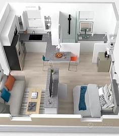 Ampio e luminoso soggiorno arredato con divano\letto,