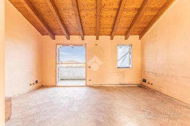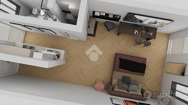 L'ambiente unico gode di un'ottima luminosità grazie agli affacci aperti e agli sfoghi esterni: un terrazzo vivibile e un balcone, perfetti per ampliare gli spazi quotidiani e godere della vista circostante.