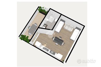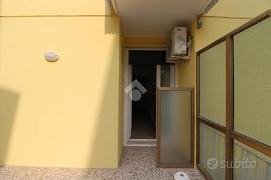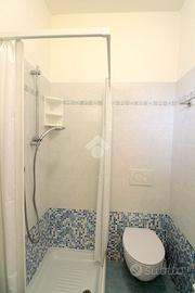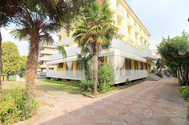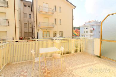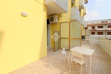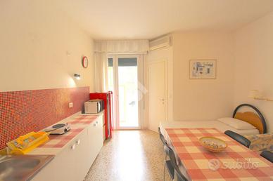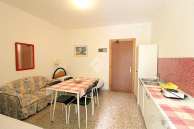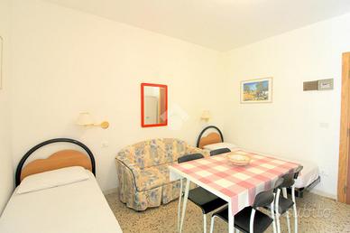 A 250 metri dalla spiaggia di ponente e a 10 minuti di passeggiata dal centro storico, si erge un fabbricato sviluppato su tre piani ristrutturato nel 2015. Salendo con l'ascensore condominiale al primo piano, troviamo un immobile di recente ristrutturazione oggetto di vendita. Camminando attraverso il corridoio comune, arriviamo all'ingresso principale dell'appartamento composto da un locale unico in cui attualmente sono presenti due letti singoli, un divano a due posti, un tavolo e sedie per quattro persone, una cucina completa di un lavabo e un piano cottura. Uscendo da una porta finestra vediamo una terrazza abitabile esposta a sud; rientrando nell'appartamento troviamo un bagno finestrato con un box doccia a pavimento e tutti i servici igienici. L'appartamento è dotato di un condizionatore con pompa di calore per l'aria calda e l'aria fredda. Compreso nella proprietà, c'è uno spazio scoperto condominiale adiacente al fabbricato comodo per parcheggiare un auto e biciclette.