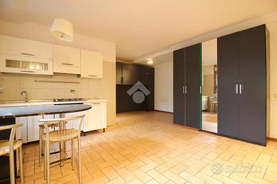 Tramite una scala d'accesso a solamente due unità immobiliari si accede al monolocale composto da ambiente open space ben suddiviso tra zona giorno con angolo cottura e zona notte con bagno.
