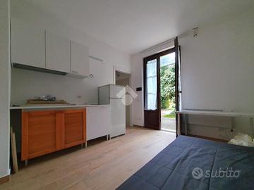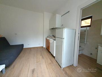 Appartamento monolocale al piano terra composto da soggiorno con angolo cottura e bagno finestratocon box doccia.
