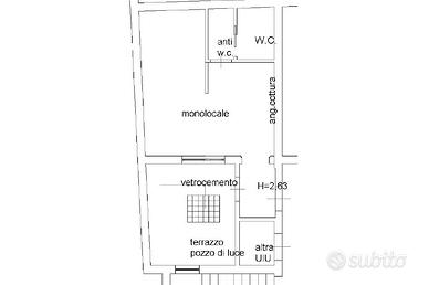 L'immobile è composto da ingresso, luminoso ambiente con angolo cottura e zona notte defilata, bagno e un ampio lastrico solare.