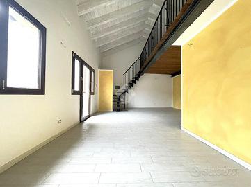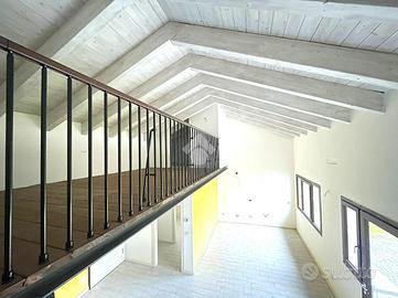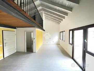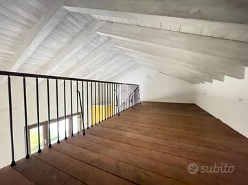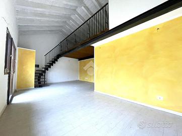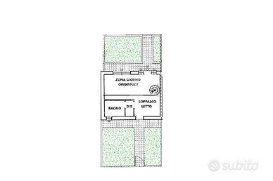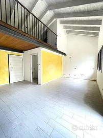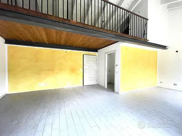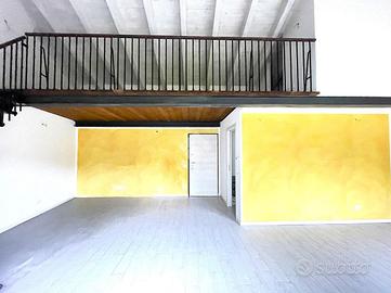 Ingresso sulla zona giorno composta da soggiorno openspace con cucina a vista, bagno finestrato con doccia e soppalco utilizzabile come camera da letto.