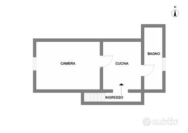 Ingresso su zona cucina, camera da letto finestrata, che assicura luminosità e ricambio d'aria e bagno.