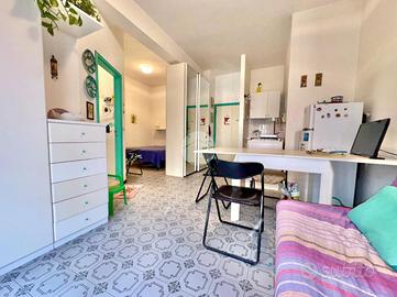 L'appartamento è composto da un unico ambiente ben organizzato, con zona giorno luminosa grazie alla presenza di un'ampia finestra che ci permette di uscire sul balcone, comodo per mangiar fuori. Gli spazi sono distribuiti in modo funzionale e troviamo un soggiorno angolo cottura e una zona notte.