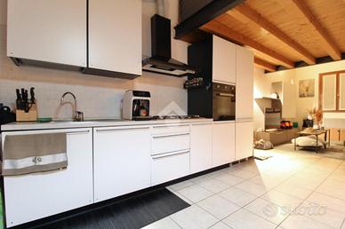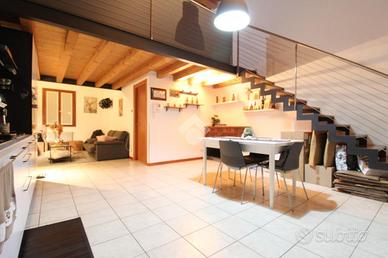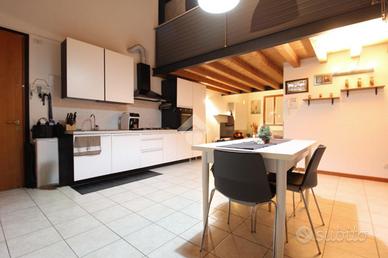 L'immobile, sviluppato in un unico livello con soppalco, presenta all'ingresso un'ampia zona giorno con cucina e soggiorno open space, un comodo disimpegno e un bagno con vasca.