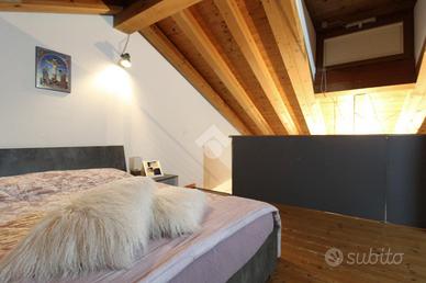 Salendo nel soppalco troviamo la zona notte, dove è presente con lo spazio necessario per un letto matrimoniale e una cabina armadio.