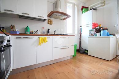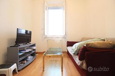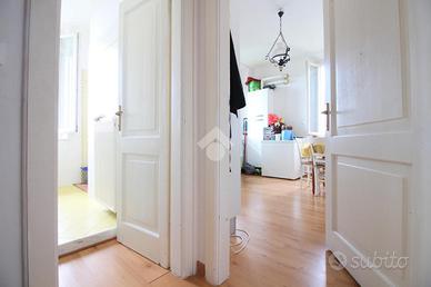 L'ingresso separa le stanze dell'intera abitazione, consentendo l'accesso diretto alla camera matrimoniale, al soggiorno, al bagno finestrato con doccia e alla cucina abitabile.