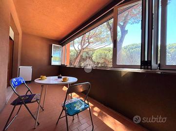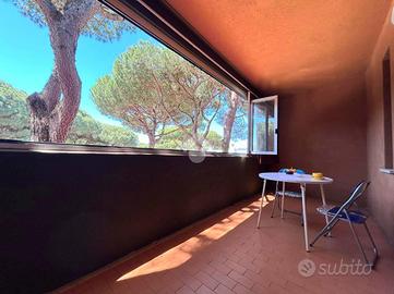 Ampia terrazza abitabile finestrata con vista mozzafiato sulla pineta.