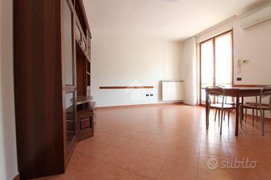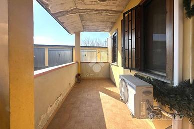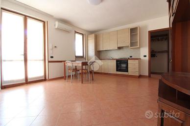 Comodo appartamento al piano terra con ingresso indipendente e portico d'ingresso di 10 mq. L'immobile è composto da soggiorno-cucina-camera, disimpegno e bagno con vasca. All'interno del cortile della palazzina troviamo il posto auto privato. La soluzione è completa di inferriate, zanzariere ed aria condizionata. Possibilità di arredamento, libero subito.