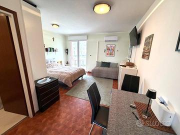 Rif:(127547600) - In piccola palazzina a pochi passi dalla spiaggia proponiamo interessante appartamento in perfette condizioni, climatizzato e con bassissime spese condominiali. Immobile composto da: cucinotto separato, comodo bagno finestrato con doccia e stanza open con accesso alla terrazza abitabile coperta vista mare. Arredo compreso nel prezzo. Ottimo anche come investimento. Disponibile da Settembre 2026. - Classe: G - IPE: 175.00 kWh/mq anno