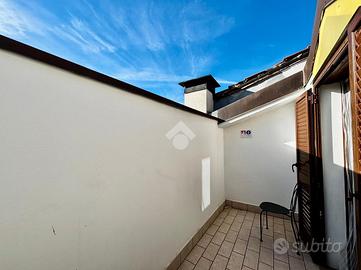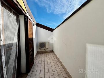 Entrando dal portone blindato, ci accoglie la zona giorno composta da cucina dal quale si accede, tramite porta-finestra, alla prima terrazza a tasca.