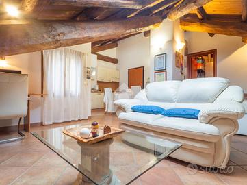 SAN MARTINO: Splendida mansarda inserita all'interno di un ex-fienile e corte colonica completamente ricostruito nel 2007. Posto al secondo e ultimo piano mansardato, questo ampio appartamento è un open space di buone dimensioni, ben suddiviso, che riesce a rendere molto accogliente e vivibile tutto l'appartamento. All'ingresso si trova una cucina ottimamente arredata che sfrutta perfettamente tutti gli spazi, sul fronte un grande tavolo che si affaccia alla porta finestra che porta al terrazzino interno, riservato e ampiamente vivibile, che dona respiro e luminosità all'intero ambiente. A seguire si trova la zona giorno illuminata da un grande velux e dove stanno comodamente due divani che racchiudono e separano dalla zona notte, con il letto matrimoniale e tutta l'armadiatura fatta su misura. Infine si trova un anti-bagno con caldaia e ripostiglio che precede un ampio e completo bagno finestrato con cabina doccia. Tutti gli impianti sono a norma e certificati, e l'abitazione è pronta per essere abitata, ideale per un single o un professionista che cerca una piacevole base su Ferrara. Al piano terra troviamo un ampio garage di proprietà esclusiva e un posto auto scoperto privato.