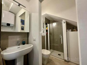 Gli interni sono stati completamente rinnovati con materiali di qualità. Il bagno, moderno e rifinito nei dettagli, dispone di una comoda doccia a filo pavimento e sanitari sospesi.