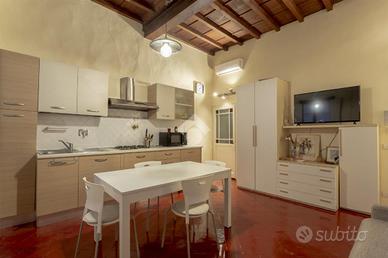 Al secondo piano di un palazzo posto nel cuore storico di Firenze, una scalinata in pietra ci conduce al secondo piano dell'immobile. Un portone in legno si apre in questo monolocale, composto da zona notte, angolo cucina con tutti i servizi necessari e il soggiorno. I doppi affacci e le travi a vista aggiungono qualcosa in più all'appartamento.