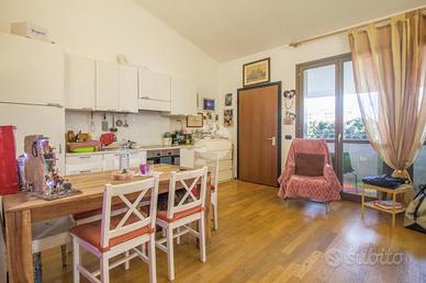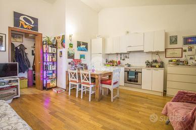 L'abitazione è situata al secondo e ultimo piano, una posizione che garantisce tranquillità, privacy e una piacevole luminosità durante tutto l'arco della giornata. L'ingresso si apre su un ampio ambiente open space, facilmente organizzabile in zona giorno e zona notte, impreziosito dalla doppia esposizione che dona ariosità e luce naturale. Dal locale principale si accede a un comodo terrazzino, ideale per un momento di relax all'aria aperta.