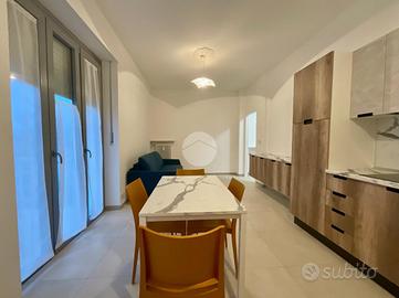 L'ingresso conduce a un ambiente unico, ben organizzato, dove si sviluppa la zona giorno/notte. Quest'ultima comprende una cucina moderna, completa di ogni arredo ed elettrodomestico, e un comodo divano letto. Il bagno, finestrato, è spazioso e dotato di un box doccia. Dalla cucina è inoltre possibile accedere al balcone. I Serramenti sono in PVC con doppio vetro color grigio, per un migliore isolamento termo-acustico. Il riscaldamento è centralizzato con termo-valvole, per una gestione personalizzata dei consumi.