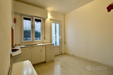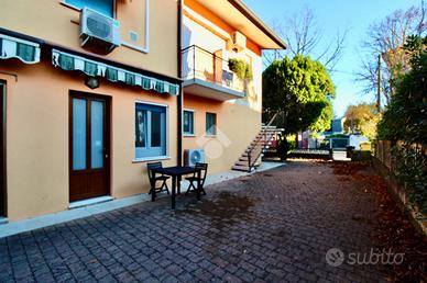 Accedendo al condominio mediante un accesso pedonale e carraio e, dopo aver percorso una decina di metri ci troviamo di fronte al portoncino d'ingresso dell'appartamento in vendita, esposto su un lato, OVEST.