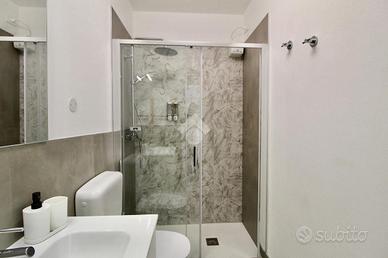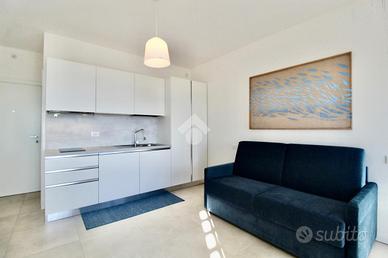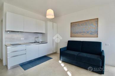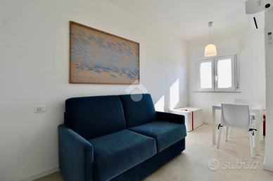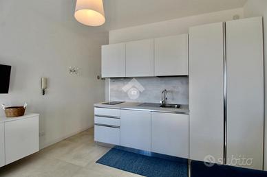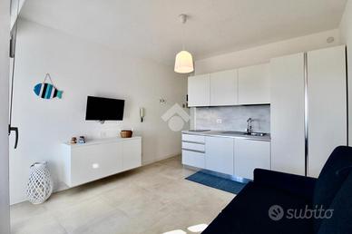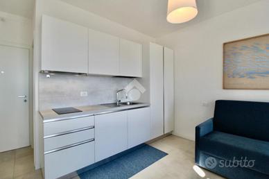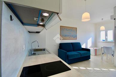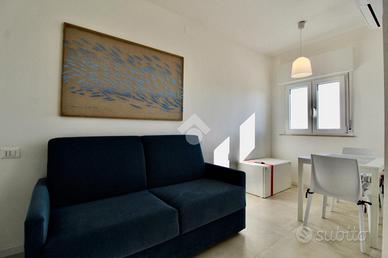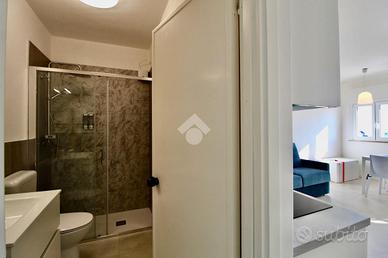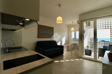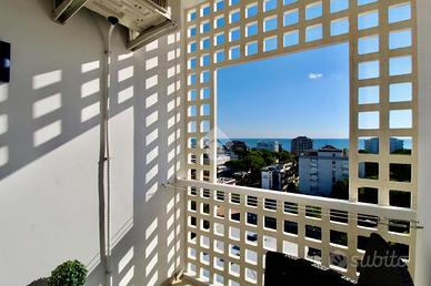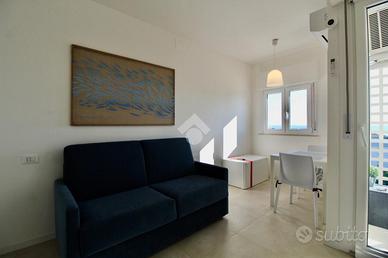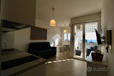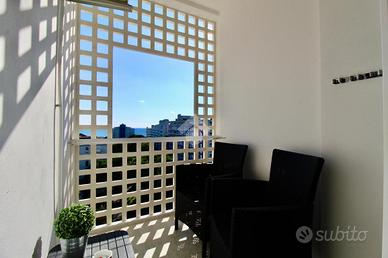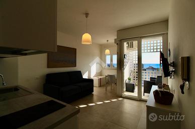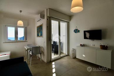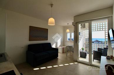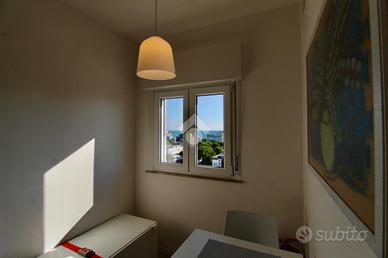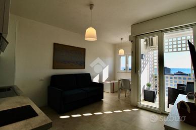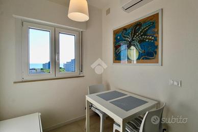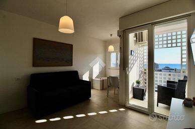 Al piano nono, raggiungibile mediante due ascensori e mediante le scale, troviamo un monolocale di recente ristrutturazione, con arredo minimalista e di design, oggetto di vendita, dal quale si può ammirare una splendida vista mare.