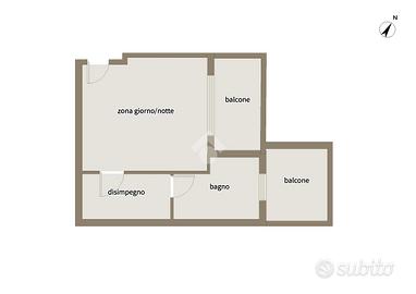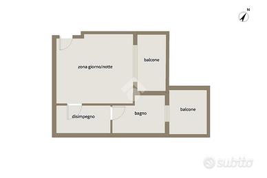 Si può acquistare un grazioso monolocale composto da ingresso direttamente nella zona giorno/notte con angolo cottura e balcone, ampio disimpegno che da accesso al bagno finestrato con doccia, anch'esso con balcone.