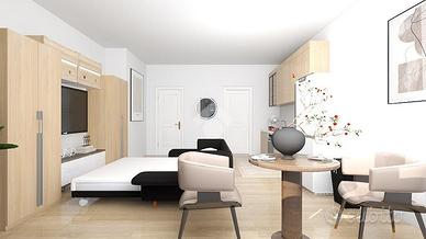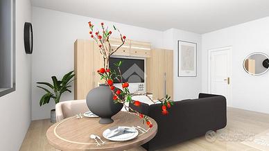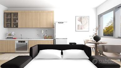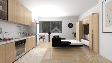 Luminoso e confortevole, l'appartamento offre una spaziosa zona giorno/notte con cucina a vista, ambiente moderno pronto per la tua personalizzazione, con antibagno e bagno finestrato dotato di box doccia.