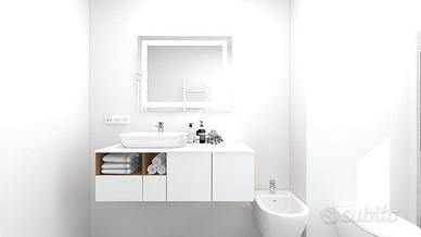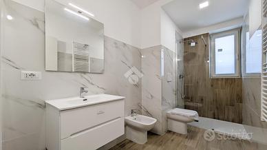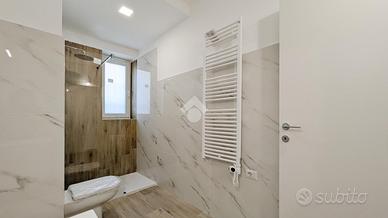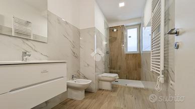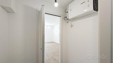L'appartamento è stato ristrutturato con cura e dispone di infissi in PVC con doppio vetro, impianti nuovi, aria condizionata e pavimenti in gres effetto parquet.