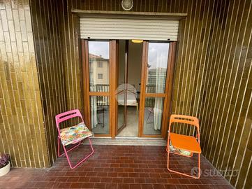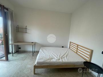 L'appartamento è condiviso con coinquilini, ed è composto da cucina abitabile attrezzata, bagno in condivisione, soggiorno e balcone. Le stanze sono arredate con letto singolo, armadio, scrivania e sedia, pronta per essere abitata, mentre la seconda è arredata con solo armadio.