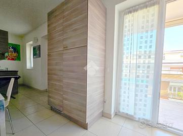 In stabile di recente costruzione del 2012, con ascensore, giardino condominiale, videocitofono e portineria mezza giornata, proponiamo in locazione al 4° piano, ampio monolocale di 45mq, così composto: Ingresso, Zona Giorno/Notte con Cucina a vista, Antibagno, Bagno cieco con doccia e Terrazzo di 15mq.