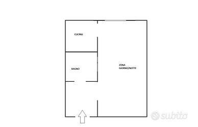 L'ingresso si apre su un comodo disimpegno che conduce alla luminosa zona giorno/notte, uno spazio ampio e ben organizzato.
