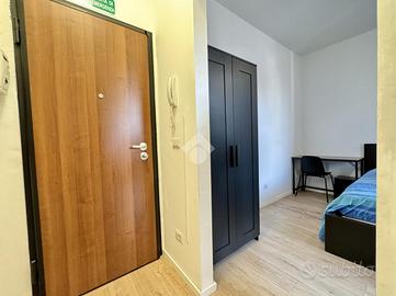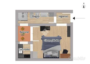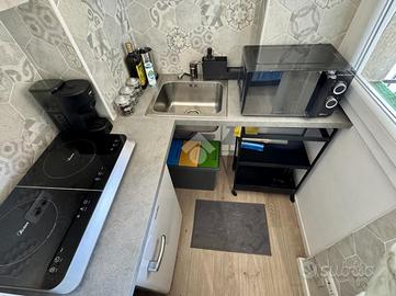 L'immobile si compone di ingresso su disimpegno, zona giorno/notte con accesso al balcone, cucinotto separato con piastre elettriche, bagno finestrato con box doccia.