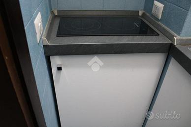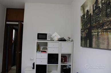 L'ingresso si apre su un comodo disimpegno che conduce alla luminosa zona giorno/notte, uno spazio ampio e ben organizzato.
