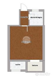 L'appartamento risulta essere così composto : L'ingresso si apre su un comodo disimpegno che conduce direttamente all'ampia zona giorno/notte, con cucinotto separato.