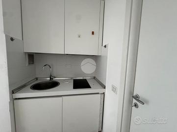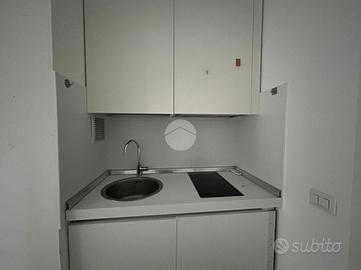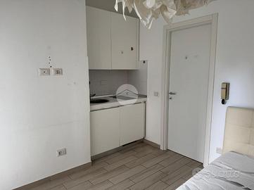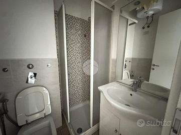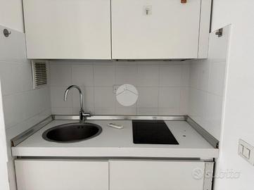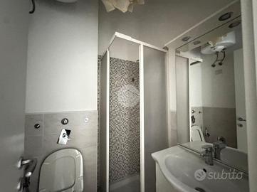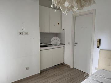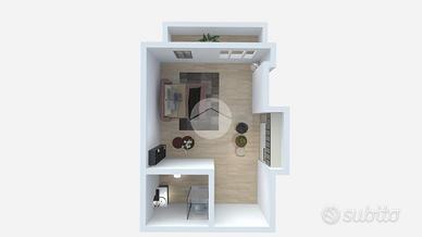 Ingresso con dispimpegno, da cui abbiamo accesso alla zona giorno/notte, con cucina a vista e dalla quale abbiamo accesso tramite portafinestra, al balcone dell'appartamento con affaccio tranquillo sulla corte interna. Infine, bagno ad aspirazione forzata con box doccia.