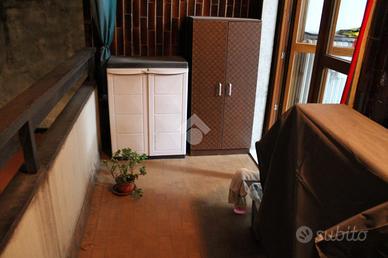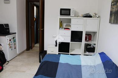 L'ingresso si apre su un comodo disimpegno che conduce alla luminosa zona giorno/notte, uno spazio ampio e ben organizzato.