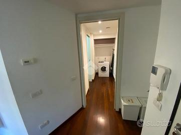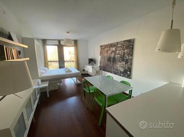 L'appartamento si compone di ingresso su disimpegno, spaziosa zona giorno/notte, cabina armadio e bagno. Due ampie porte finestre affacciano direttamente sul curato giardino condominiale, garantendo ottima luminosità e un piacevole affaccio verde.