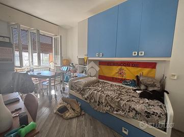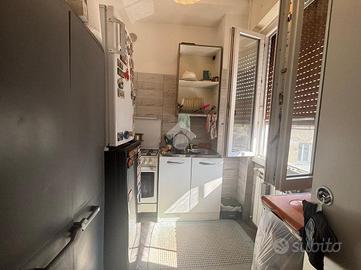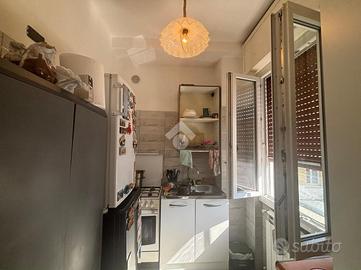 ingresso con disimpegno, subito sulla sinistra bagno finestrato con box doccia, sala e cucina entrambi finestrati.