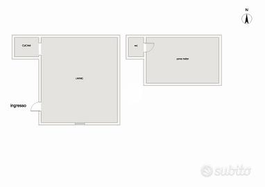 L'appartamento è suddiviso su due livelli, al primo livello zona living con angolo cottura e al secondo livello zona notte con bagno.