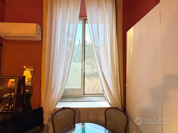 Nel cuore del quartiere Chiaia, in una traversa di Via Pontano, contesto centrale e allo stesso tempo tranquillo e riservato, che collega Via Francesco Crispi con Via Riviera di Chiaia, Tecnorete Mergellina propone in locazione grazioso monolocale soppalcato e arredato. La soluzione posta al piano terra di uno stabile in tufo e' cosi composta: Ingresso, bagno finestrato, open- space con angolo cottura ad induzione e letto matrimoniale soppalcato. Completa l ' immobile ampia finestra che rende il cespite luminoso, infissi in doppio vetro e condizionatore caldo/freddo .