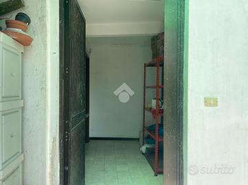 La presenza delle vetrate dona all'abitazione ottima visibilità, oltre ad essere situato sulla strada principale. Dispone di un accesso secondario sul retro, che conduce al giardino in comune con i due appartamenti situati ai piani superiori.