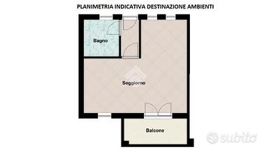 L'ingresso si apre su un corridoio che conduce all'ambiente principale munito di angolo cottura, un ambiente luminoso e funzionale dove è stato ricavato, tramite una porta scorrevole, un angolo letto che rende pratici gli ambienti. Conclude la soluzione un balcone vivibile e un bagno finestrato con doccia.