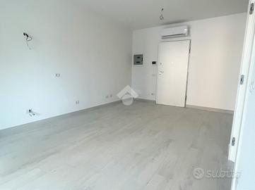 L'appartamento di 43 mq più 9 mq di loggia si trova al primo piano con ascensore e senza barriere architettoniche, internamente è composto da: ingresso, ambiente unico open space, disimpegno con angolo lavanderia, bagno finestrato con box doccia, cantina e comoda autorimessa.